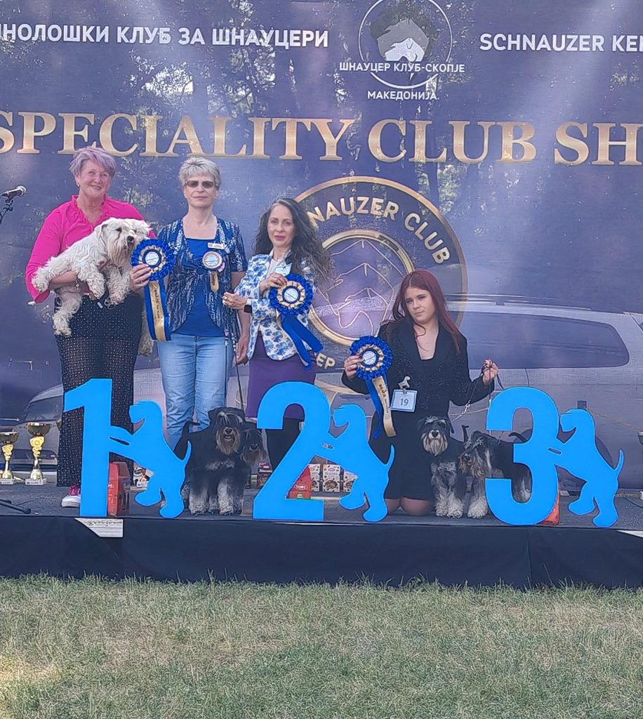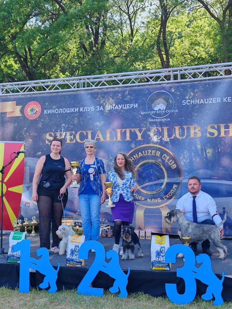 Vrem sฤ mulศumim organizatorului Lidija Janik pentru seriozitatea ศi implicarea ei ศi tuturor prietenilor noศtri din Macedonia, Grecia ศi Finlanda pentru tot sprijinul acordat! Felicitฤri tuturor concurenศilor din toate rasele de schnauzer!