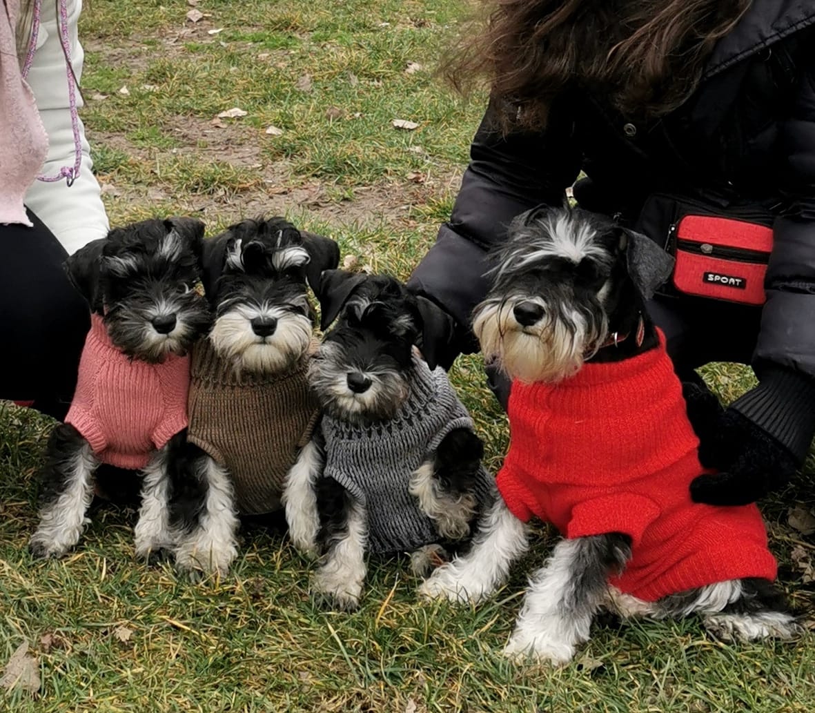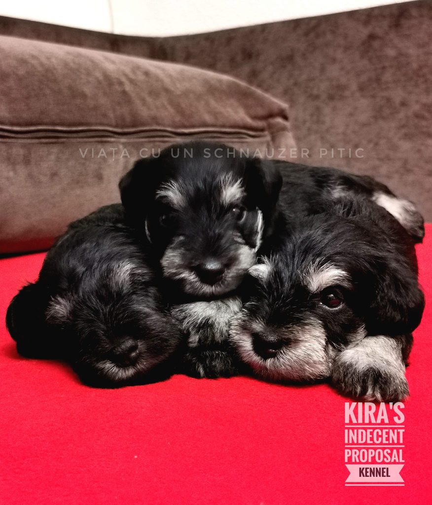 Cum vedem noi conceptul de crescător Un crescător bun și asumat este acela care mai presus de orice își iubește câinii, care se asigură că puii ajung pe mâini bune, acela care face monte selectate atent și cu responsabilitate, căutând masculul potrivit în funcție de femela pe care o deține și care vede acel mascul de cel puțin câteva ori ca să se asigure inclusiv de caracterul acestuia. Un crescător bun nu face monte doar cu masculul din curte sau cu masculii prietenilor, doar pentru că e mai puțin costisitor, un crescător bun NU e acela care face monte doar de dragul de a da bine la număr și pentru a-i apărea numele canisei în tot pedigree-ul, sau pentru a se lăuda cu un număr de…. Un crescător bun concurează cu fair-play în competiții și are capacitatea să strângă mâna aceluia care vine cu un câine mai bun, nu încearcă să-l fraudeze în vreun fel sau altul, căci are încredere în valoarea muncii și câinilor lui și nu are nevoie să câștige chiar și atunci când NU merită! Un crescător bun nu se teme să concureze acolo unde are competiție și nu merge doar la competițiile unde concurează singur la rasă. Noi am avut în majoritatea competițiilor concurență acerbă și am concurat inclusiv cu canise de top, mai ales în Ungaria și Slovenia, dar și în celelalte țări unde am câștigat titlurile de campion pentru Kira și ceilalți câini ai noștri. Un crescător bun își bazează munca pe studii aprofundate, pe introspecție, pe asumarea și integrarea propriilor erori, atât de judecată, cât și pe cele rezultate din propriile experiențe, pe multă iubire și pe lucru cu câinii săi…muuult lucru de la educare la socializare. Un crescător bun nu se oprește doar la munca de selecție, ci își gândește un întreg program de cercetare, ameliorare, selecție, mers în competiții pentru a-i fi evaluați câinii corect și apoi creștere și educare a puilor din cuiburi. Un crescător bun este pasionat de munca lui, față de care nutrește o fascinație inegalabila și mistuitoare. Noi preferăm să gândim muuult până facem o montă, analizăm totul din toate unghiurile posibile, tocmai de aceea nu vom avea monte pe bandă rulantă ca să impresionam prin număr. Ne putem lăuda că muncim pe rupte pentru a aduce un plus valoare la câinii schnauzer pitic negru-argintiu din România. Teste de sănătate am făcut din plin, teste pentru textura și pigmentul firului de păr, inclusiv ne-am testat câinii cu care am făcut montă la ochi, știind că nimeni nu o face.